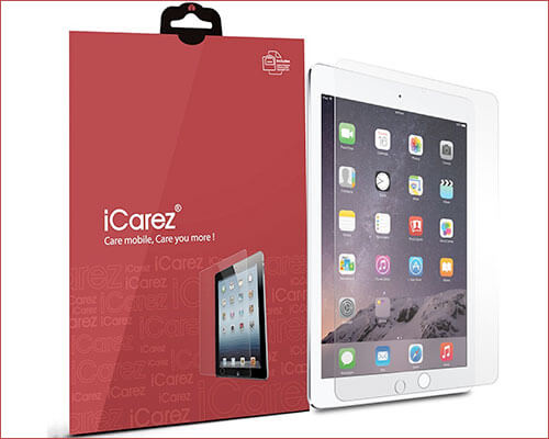 Icarezには3時間の硬度評価があります。それは周りの最も難しいスクリーンプロテクターの1つです。しかし、それはそれほど厚くないため、iPad Airの使いやすさに影響します。 Icarezは、iPadの他のスクリーンガードとほぼ同じ仕様を備えています。それは、アンチスクラッチ、アンチグレア、アンチダストであり、指紋の刻印を防ぐため、常に明確なスクリーンがあります。