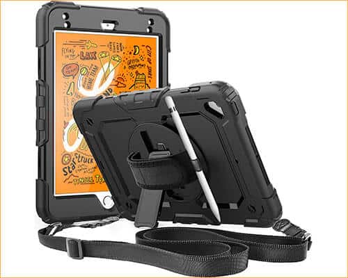 あなたのようなほとんどのユーザーが好むOwkeyは、iPad Mini 5の頑丈なケースに関しては単独で立っています。このケースは、ペンホルダー、360度のスイベルスタンド、ハンドストラップ、ショルダーストラップなどを誇っています。ハンドルハンドグリップは調整可能なので、外出先で簡単に継続できます!その中で使用される材料は耐久性があり、衝撃的です。