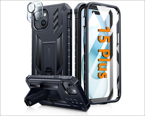 カメラの周りに固体の粗いエッジと上げられたベゼルに加えて、ディスプレイを保護するための内蔵スクリーンプロテクターを取得します。また、背面に人間工学に基づいたキックスタンドを使用して、ランドスケープモードの映画を楽しんでください。このケースはiPhone 15 Plusに余分なかさばらを追加しますが、キックスタンドの周りに取り外し可能なスイベルベルトクリップを使用して簡単に運ぶことができます。