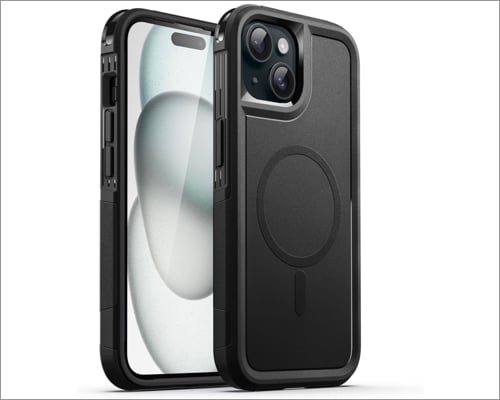 iPhone 15 PlusのMagsafe互換性のある頑丈なケースを探している場合、I-Biason Aresのケースが理想的です。頑丈で、シンプルで、便利です。ハードポリカーボネートシェルの滑り止め品質をお楽しみいただけます。その上、iPhoneに一致するバンパーカラーの選択肢がいくつかあります。