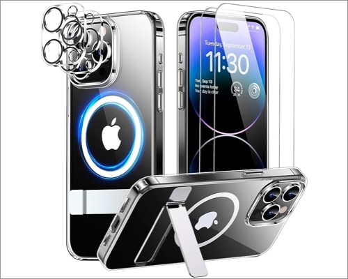 タウリからの透明なケースは、保護に加えて5-in-1究極の防御システムを提供します。 iPhoneの装甲城として機能し、ボディ、スクリーン、レンズを保護します。スマートフォンは、すべての側面からのワイヤレス充電と衝撃的なデザインに対する磁気リングのサポートのおかげで、傷、ドロップ、および影響から保護されます。