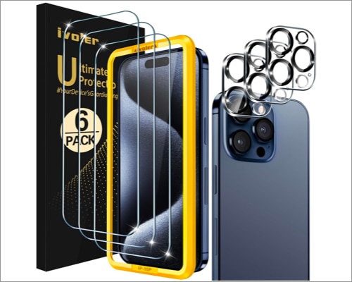 予算が低いが、iPhone 15 Pro Maxに適したスクリーンプロテクターが必要な場合は、Ivolerの強化ガラスが完璧なオプションになる可能性があります。わずかな価格で3つのスクリーンプロテクターとカメラレンズがあります。