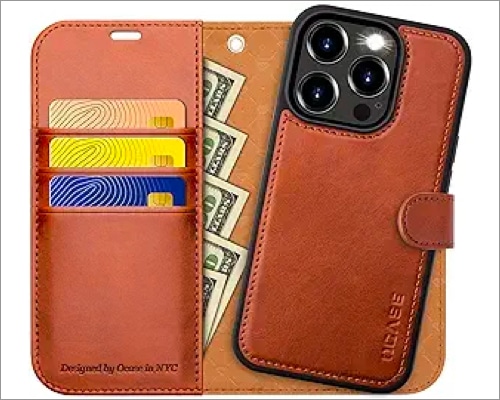 OCaseレザーカバーは、iPhone 15 Proに最適なアクセサリーの1つです。このフェイクレザーケースには、3つのIDまたはクレジットカードと現金を運ぶことができる磁気フリップウォレットがあります。そのため、取り外し可能なウォレットは、強力な磁気クランプで必需品を安全に保ちます。便利!