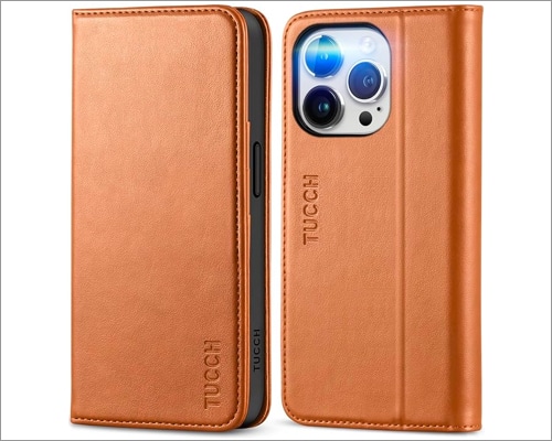 Tucchウォレットケースは、革のプレミアムフィールが好きな場合は、もう1つの素晴らしいオプションです。洗練されたデザイン、耐久性のあるフレーム、軽量ビルド - この多目的ケースはすべてを提供します。 PUレザーは、電話中にiPhoneを保持するときに手に柔らかい感触を提供します。さらに、柔らかいTPUの内側のケースは、ダメージを引き起こす前に突然の衝撃の影響を吸収します。