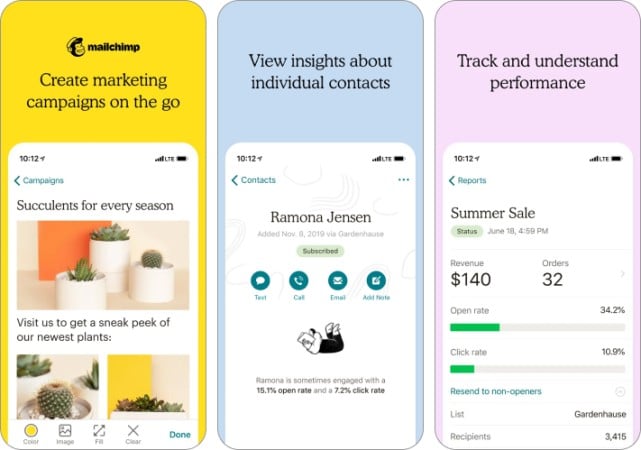 次の動きのためのパーソナライズされた推奨事項を取得し、マーケティング担当者向けのこのiPhoneアプリを使用して、仲間のMailChimpの顧客からマーケティングのインスピレーションを見つけます。これにより、モバイルデバイスからビジネスマーケティングを制御するのに最適なツールが提供され、いつでもどこからでもアクセスできます。
