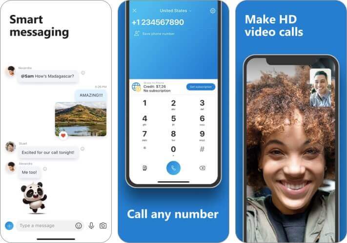 これは、世界中の専門家が使用する最も一般的なアプリの1つです。一度に最大49人を収容できるビデオ通話や会議に広く使用されています。また、チャット、音声通話、および基本的なファイル共有の目的に使用することもできます。 WiFiを使用している場合、または無制限のデータプランを使用している場合、仲間のSkypeユーザーに無制限の通話を行うことができます。