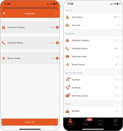 簡単なクリーナーは、このリストにある他のiPhoneクリーナーアプリとは異なります。これは、デバイスから欠落している情報との連絡先と連絡先などの問題を修正するのに役立つ連絡先管理ツールです。