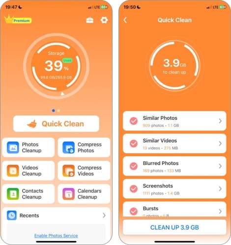 クリーンアップ:電話ストレージクリーナーは、最も効果的なiPhoneクリーナーアプリの1つです。 iPhoneと電子メールのジャンクファイルを取り除く多くの機能が付属しています。ただし、無料版が限られているため、すべての機能にアクセスするためにサブスクリプションに支払う必要があります。