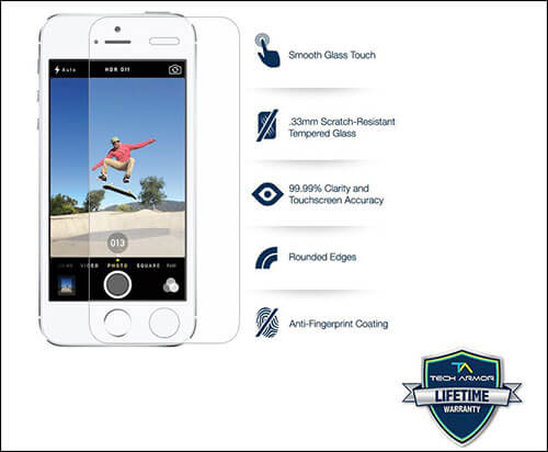 名前が示すように、Tech Armorはプレミアムな弾道焼きガラスプロテクターです。ガラスの正確なレーザー切断は、iPhone SEに完全にフィットします。また、99.99%のHD Clarityがあります。これは、プロテクターをまったく持っていないようなものです。