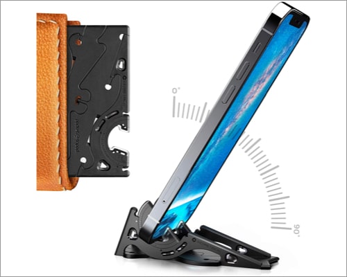 三脚を折りたたむと、カードの形状とサイズに変換されます。これにより、持ち運びが非常に簡単になり、これを財布に入れて、三脚を持ち歩くことの手間を忘れることができます。また、互換性があり、12.5mmよりも薄い電話で動作します。