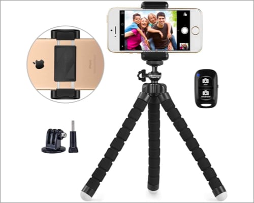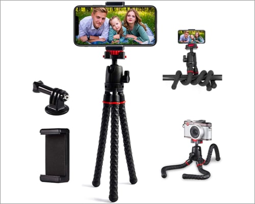 スイベルボールヘッドを使用すると、360度のショットをキャプチャでき、三脚の脚のタコの柔軟性は、お気に入りのショットの心を揺さぶる角度と向きを提供します。