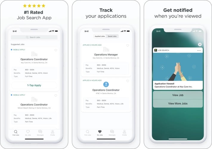 名前が示すように、Ziprecruiterは関連するジョブを毎日ジップした受信トレイに送信します。外出先でジョブを検索したり、1回のタップを使用してジョブに適用したり、将来のアプリケーションのためにデータを保存したりできるiOSアプリ。