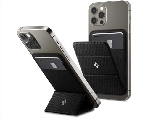 iPhone Magsafeウォレットと組み合わせたこの多目的な多機能製品をご覧ください。それは非常にスリムですが、3枚のカードを持っています。さらに、キックスタンドに変わり、デバイスをハンズフリーで使用するためにそれを支えます。