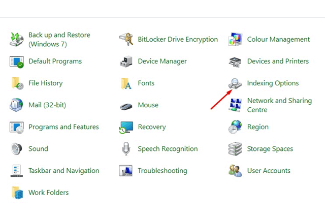 ステップ3。コントロールパネルのインデックス作成オプションボタンをクリックします。