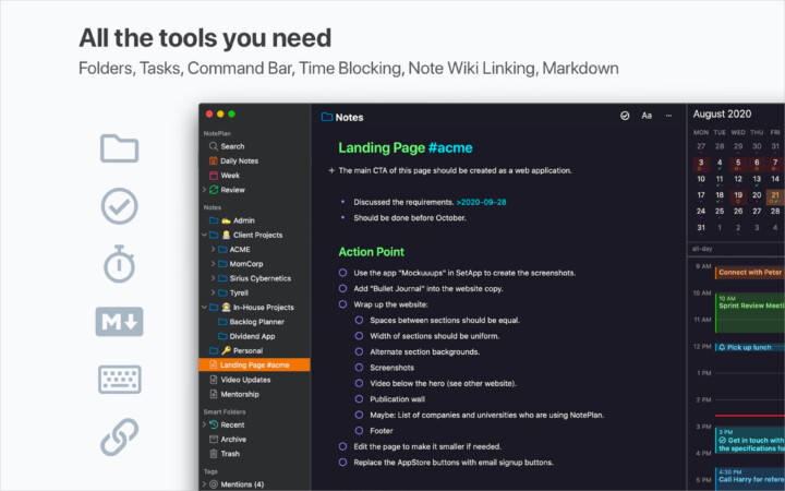 NoteplanのUIは、あなたが出会ったかもしれない他のいくつかのアプリに思い出させるかもしれません。これらのUIの類似性を超えたとき、Noteplanは、このアプリが組み込まれているため、カレンダーとタスクマネージャーアプリの代替品と見なすことができるアプリです。