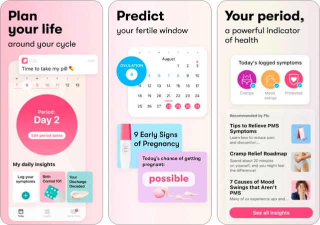 また、肥沃度のトラッカーであり、肥沃な窓とピーク排卵日に関する情報を提供します。 FLOはまた、70を超える症状と活動を追跡して、身体パターンの最も正確なAIベースの概要を提供し、サイクル全体の変化を監視するのに役立ちます。