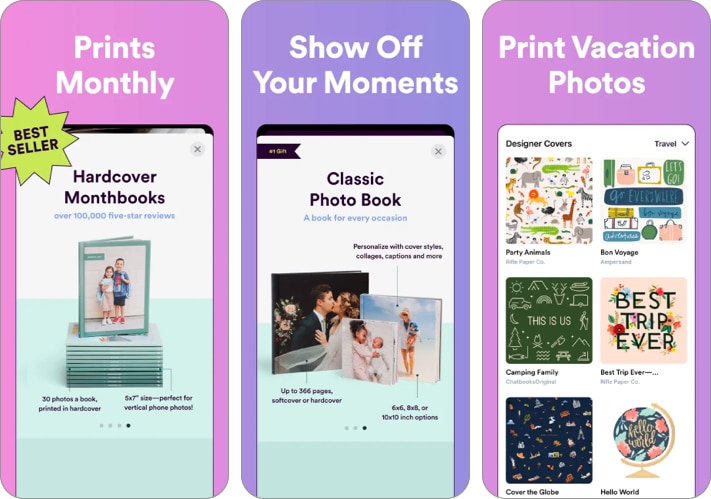 一度、あなたの美しい思い出の宝物で満たされたパーソナライズされた写真帳を作ります。 300万人以上が、画像のカスタマイズを楽にするシンプルなインターフェイスでアプリを愛しています。アカウントを作成した後、iPhone、iPad、またはMacから最大594枚の写真を選択できます。