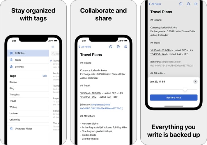 SimpleNoteはメモをかけて信じられないほど簡単にします。このアプリを使用すると、アイデアをキャプチャし、リストを高速かつ効率的に作成できます。タグとピンを使用して、すべての重要なメモを整理します。きれいなインターフェイスと使いやすい機能により、再生がより便利になります。ファイルを同期して、すべてのデバイスを介してアクセスできます。