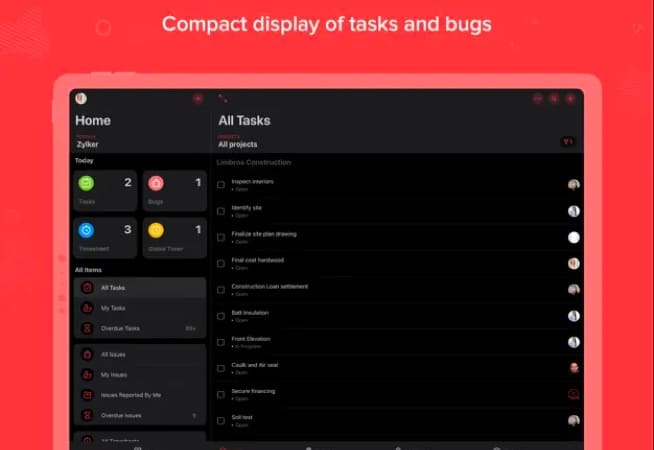 Zohoは、Zohoプロジェクトを含む多くの組織アプリを、適応可能なタスク管理のために提供しています。プロジェクトの操作を計画し、タスクを配布し、リソースを制御し、タイムシートの進捗状況を監視し、スケジュールの完全なタスク、さらには問題を報告できます。