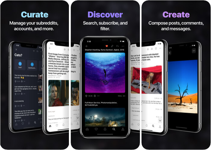 このアプリには、複数のRedditアカウントのサポート、PassCode Protection、Night Mode、Fullscreen Immersive Readingのリーダーモード、Repost Finder、SideBarのSubredditsの自然な選択などなど、いくつかのユニークな機能があります。