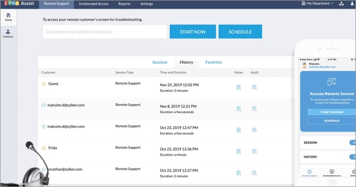 Zoho Assistは、遠くからの顧客とのつながりや支援を支援するように特別に設計された多用途のクラウドベースのリモートデスクトップツールです。これは、シームレスでオンデマンドのWebベースのカスタマーサポートセッションのための頼りになるソリューションです。