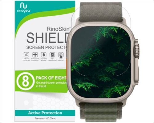 Rinogear Apple Watch Ultra 49mmスクリーンプロテクターは、高度なポリマー接着剤を備えた多層的なスマートスキンフィルム素材で構築されています。したがって、曲線を覆うことは完全に柔軟であり、優れたフィッティングのために精密レーザーカットを備えています。また、クリスタルクリアな見えない高解像度のガラスのような表面は、頑丈な外観とオリジナルのルックスをかさばらせずに維持します。