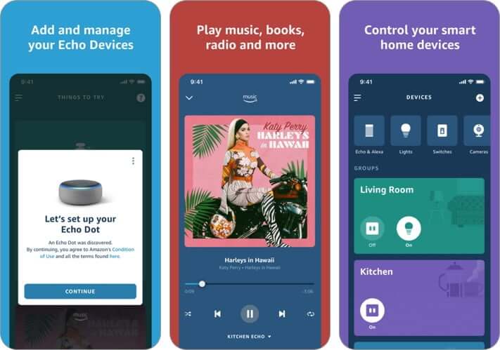 Alexaを搭載したこのアプリは、iOSで非常に人気があります。 Amazon Echo Devicesで動作するように設計されています。このアプリを使用して、Alexa対応のデバイスを管理するだけでなく、音楽を再生したり、ラジオを聴いたり、ショッピングリストを作成したり、ニュース更新を取得したり、スマートホームデバイスを制御したりできます。
