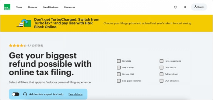 そのシンプルさで知られるH&Rブロックは、変装のもう1つの祝福であり、納税プロセスを通じてあなたを助けるためにキュレーションされています。税金を提出する直感的で使いやすい方法を探している人に最適です。 H&Rブロックの専門家からのよく組織された支援とともに、税控除や信用最適化などの排他的な機能を手に入れましょう。