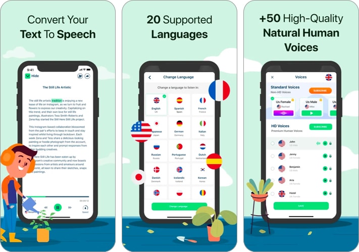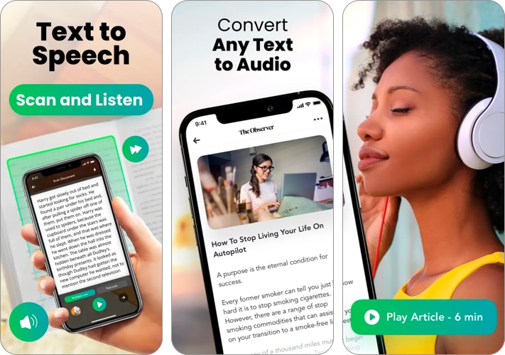 Speechifyは、ドキュメント、記事、PDF、電子メールなど、さまざまな種類のコンテンツをリッスンできる優れたテキストツースピックアプリです。 2,000万人以上のユーザーがいて、App Storeで最高評価のTTSアプリです。