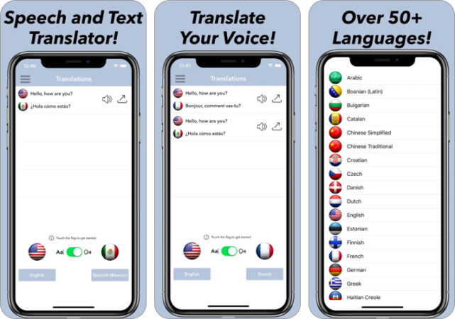 100を超える言語で書かれた会話をすることができます。あなたの必要に応じて、男性または女性の声でテキストを翻訳することを選択します。 iPadでは、他のアプリを使用しながら解釈を実行できます。