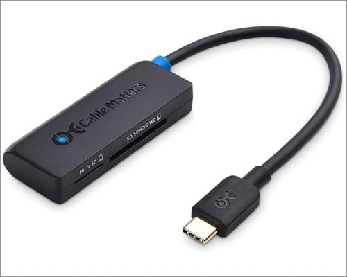 Macから他のタイプCサポートされたデバイスまで、複数のデバイスで動作します。 AppleのUSB-Cカードリーダーとは異なり、マイクロカード用のポートがあり、同時にカードを読むことができます。必要なのは、遅刻を引き起こす可能性のある追加機能がないカードリーダーである場合、これは行く方法で比較的手頃な価格です。