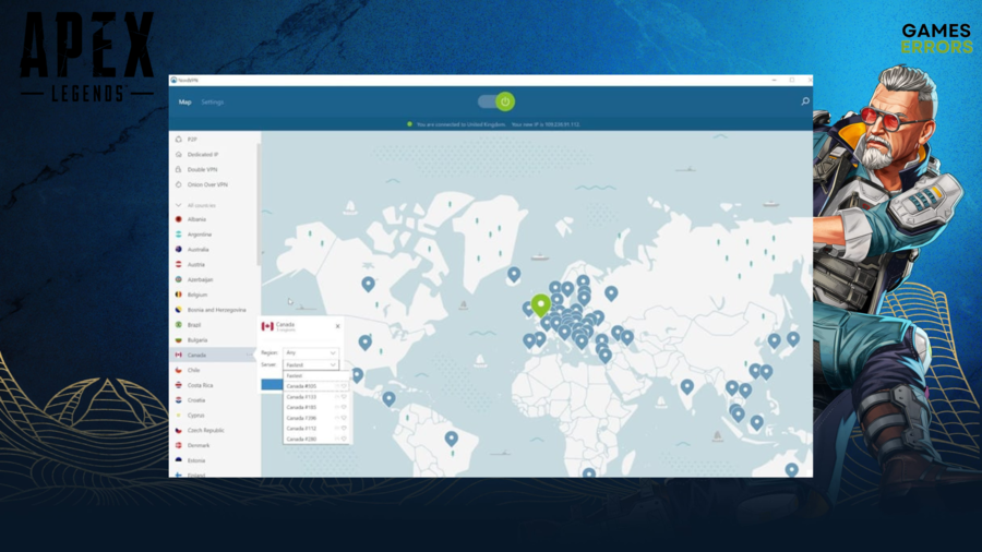 nordvpnオンラインセキュリティとゲームのパフォーマンスに関しては、大国です。世界中の広範なサーバーネットワークを誇っています頂点の伝説最小限のpingでサーバーに接続するプレーヤー。