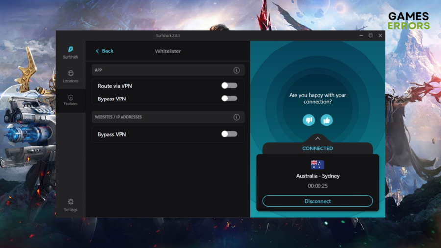 - VPNで利用可能なすべてのセキュリティ対策を有効にして、安全なゲームセッションを確保します。