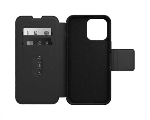 Otterboxのこのプレミアムレザーフォリオケースを使用すると、カード所有者スロット内に2枚のカードを保存できます。より良い保護のために、ケースの下にポリカーボネートのシェルがありますが、革は柔らかく感じられます。フォリオケースを閉じると、磁気ラッチは満足のいくものと感じます。それはテストされ、軍事グレードの基準よりも3倍強いと考えられています。