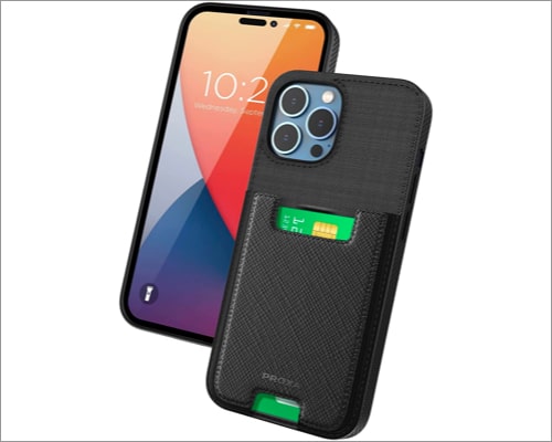 合成革で作られたProxa Slim Cardケースは、iPhoneの壁の財布ケースです。一見するとエレガントな外観を与えます。最大5枚のカードを保持でき、カードスロットは1枚のカードしか保持していなくても仕事をすることができます。