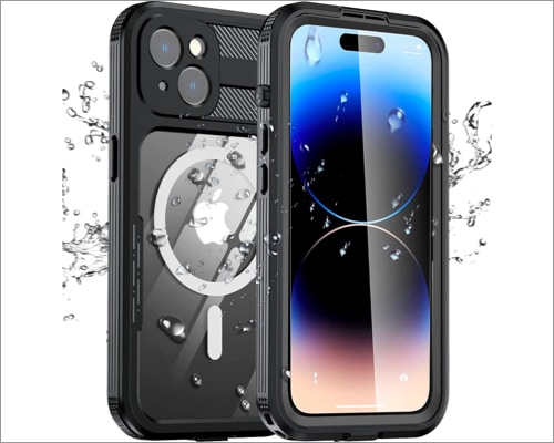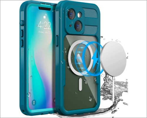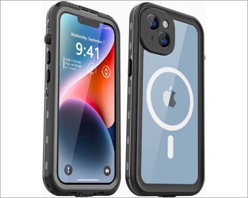 防水性があり、1時間ほど深く2メートル潜ることができます。ただし、IPX8認定のみであるため、ダストプルーフ機能が必要な場合は、他のオプションを選択できます。このケースには、QIとMagsafeワイヤレス充電をサポートした明確なバックがあります。