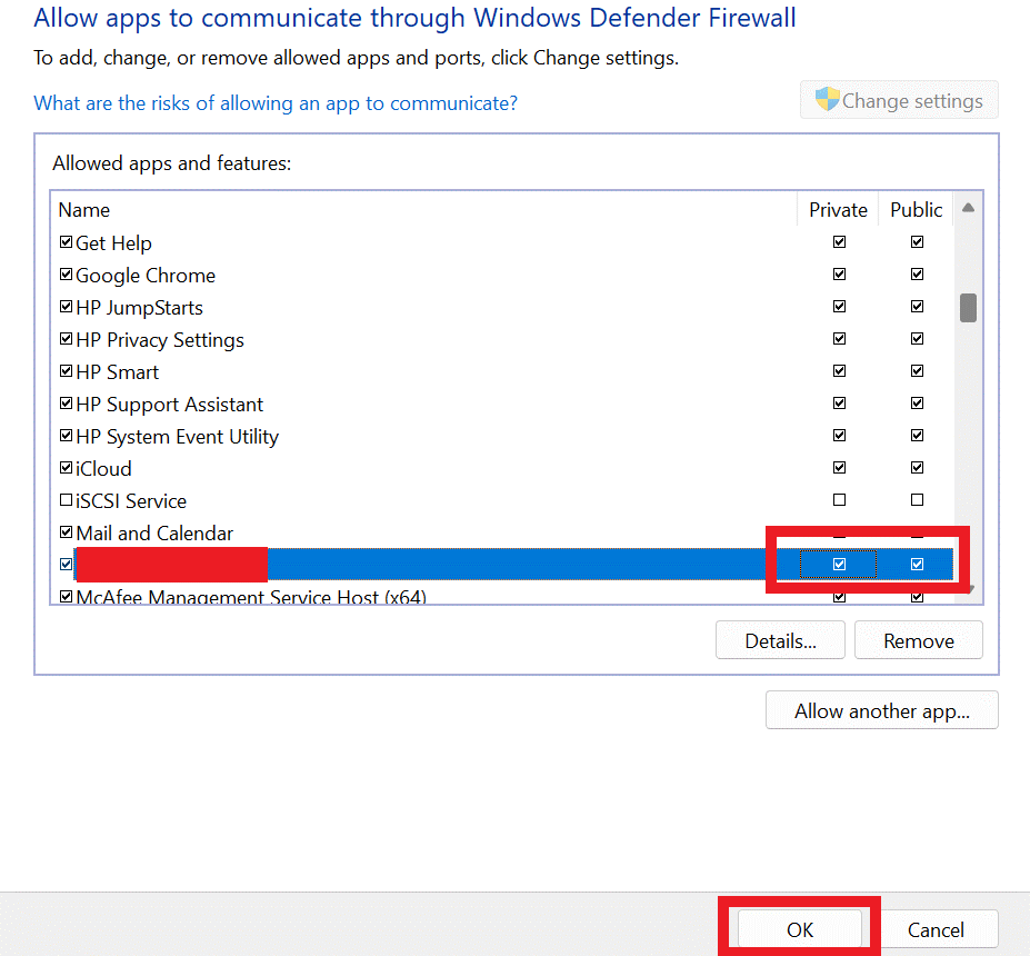- 最後になりましたが、ボックスのために確認してくださいパブリックおよびプライベートネットワーククリックする前にチェックされますわかりました変更を保存するため。