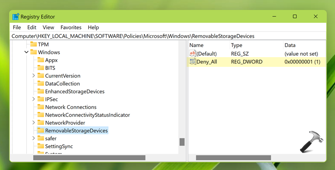 HKEY_LOCAL_MACHINESOFTWAREPoliciesMicrosoftWindowsRemovableStorageDevices