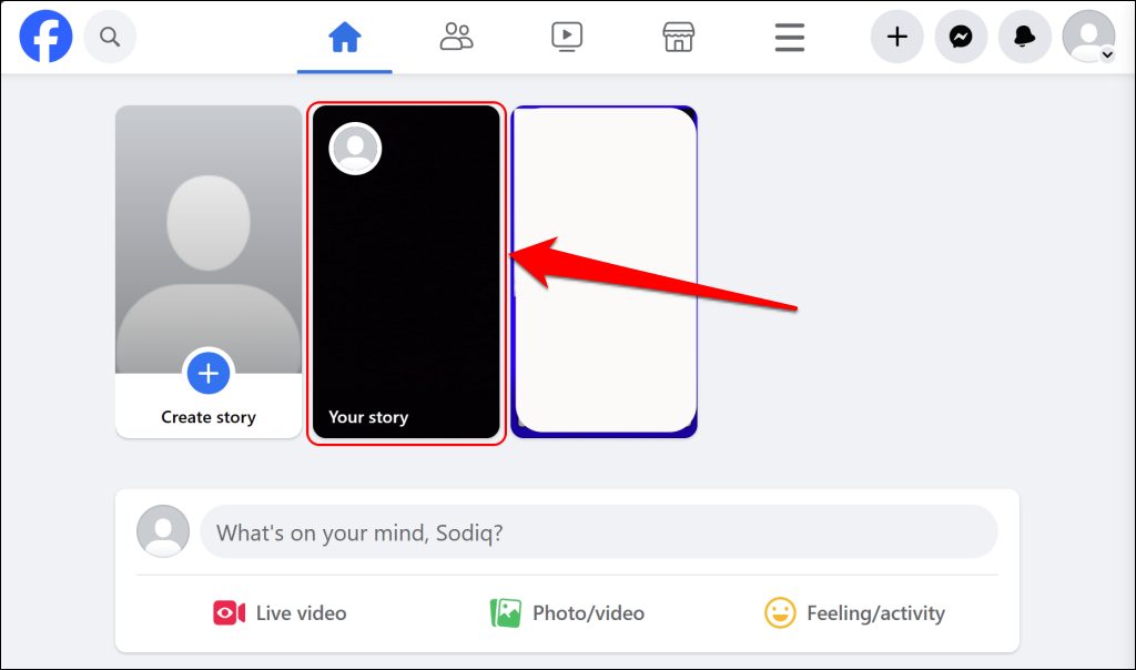 - を選択しますあなたの話Facebookのホームページの上部にあるカード。