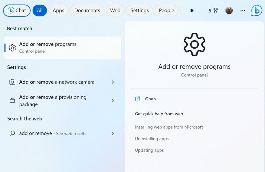 ステップ2: タイププログラムを追加または削除しますをクリックしますベストマッチ結果。