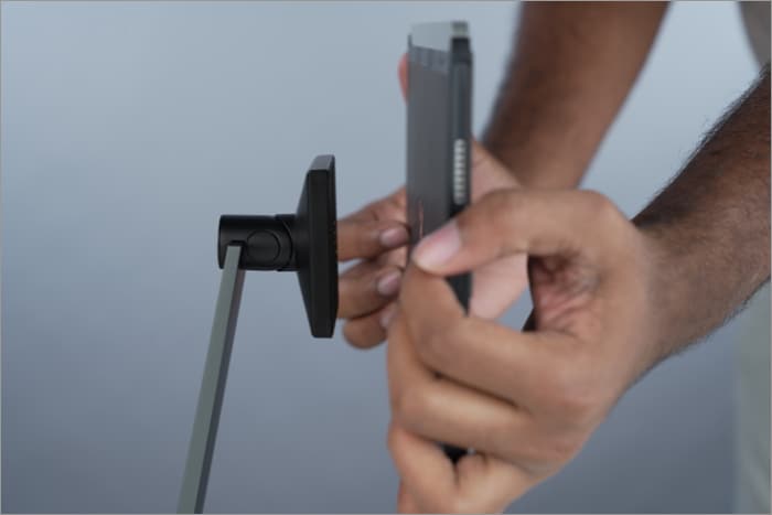 スタンドの上部にある磁石のおかげで、iPadをどんな方法でも配置できます。また、取り付けた後でも、それらを回転させることができます。ただし、ユーザーが最大限の柔軟性を提供するために、垂直傾斜を除いて、頭を水平に移動できれば、感謝していたでしょう。