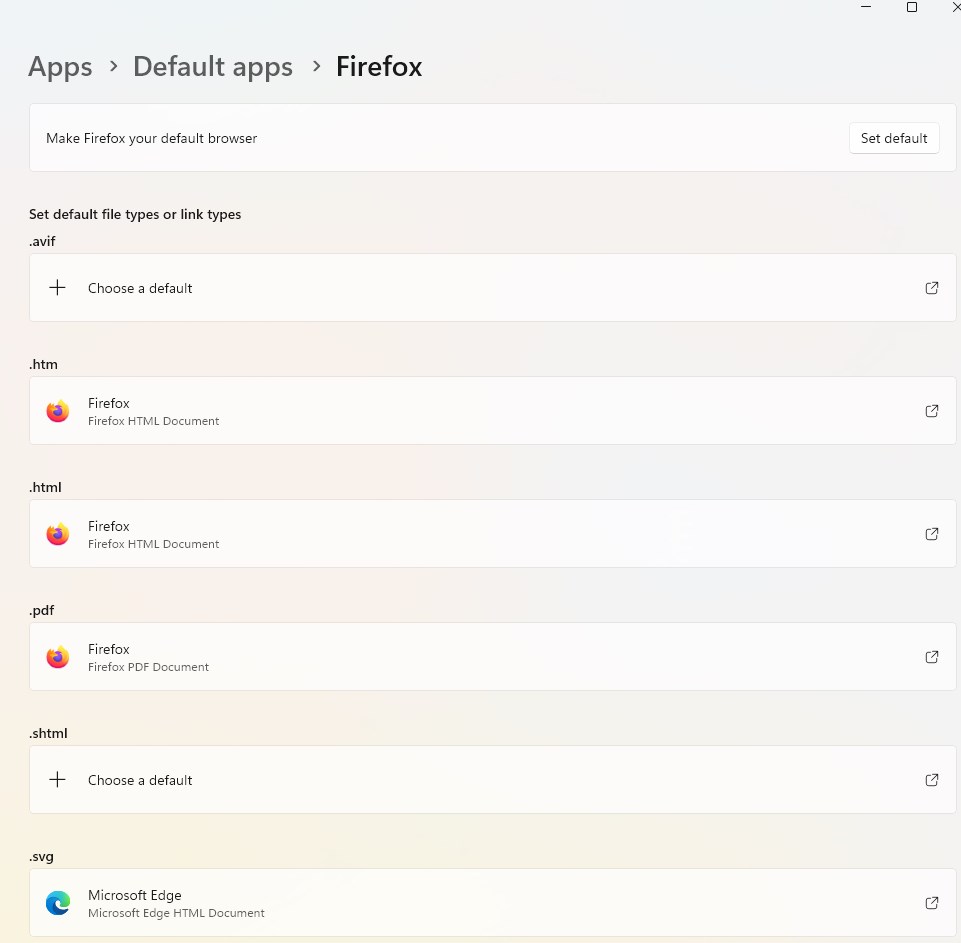 トピックに戻ると、Windows 11のデフォルトのブラウザを変更するのは少し混乱しています。アプリをデフォルトとして設定すると、すべてのWebプロトコルを処理するための頼りになるアプリになると仮定しますが、それほど単純ではなく、各タイプに対して変更する必要があります。