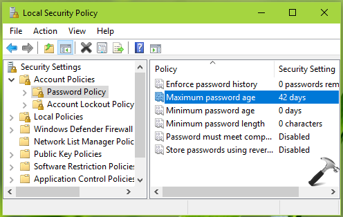 6。の右ペインにパスワードポリシー、名前付きのポリシー設定を探します最大パスワード年齢。ポリシーをダブルクリックして、ユーザーパスワードを期限切れにする日数に等しく設定します。クリック適用するに続くわかりました。