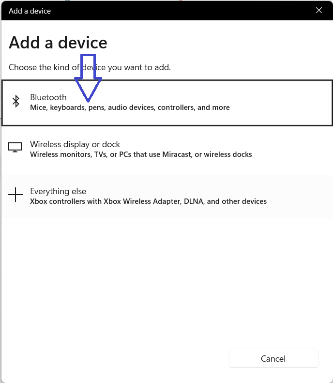 - デバイスウィンドウの追加で、Bluetoothセクションをクリックします。