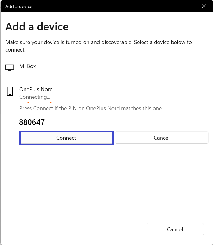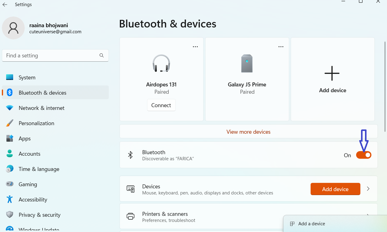 方法1:BluetoothペアのWindows 11 PCを介してAndroid携帯電話を介してAndroidモバイルをWindows 11に接続します。