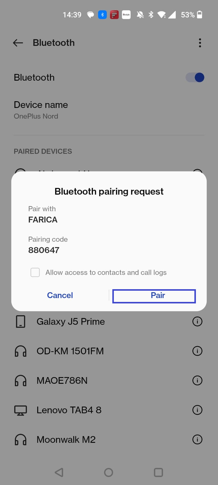 - あなたのAndroid電話でクリックしますペアクリックしてください接続するあなたのPCで。