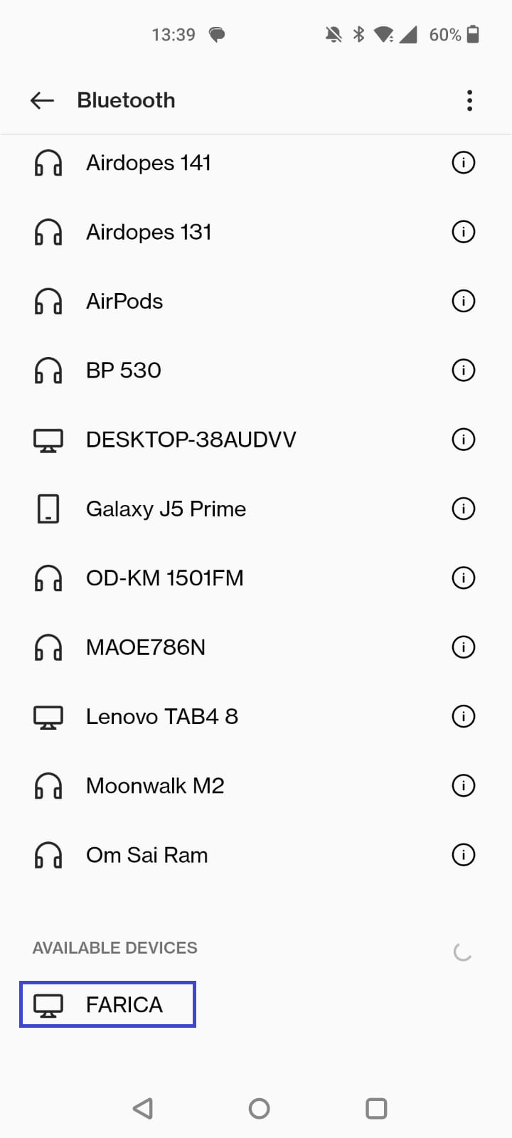 - 次に、に表示されるデバイス名をクリックします利用可能なデバイスAndroid電話のセクション。
