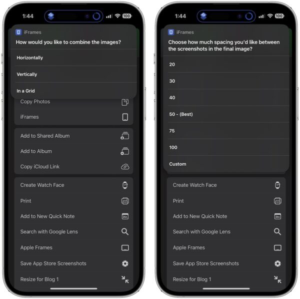 実行すると、ショートカットはわずか10秒で出力イメージを作成することができ、フレーム付きスクリーンショットの作成に利用できる最速のソリューションになります。このショートカットの最良の機能の1つは、複数の画像を1つに組み合わせることもできることです。これは、特にブロガーの場合は非常に便利です。