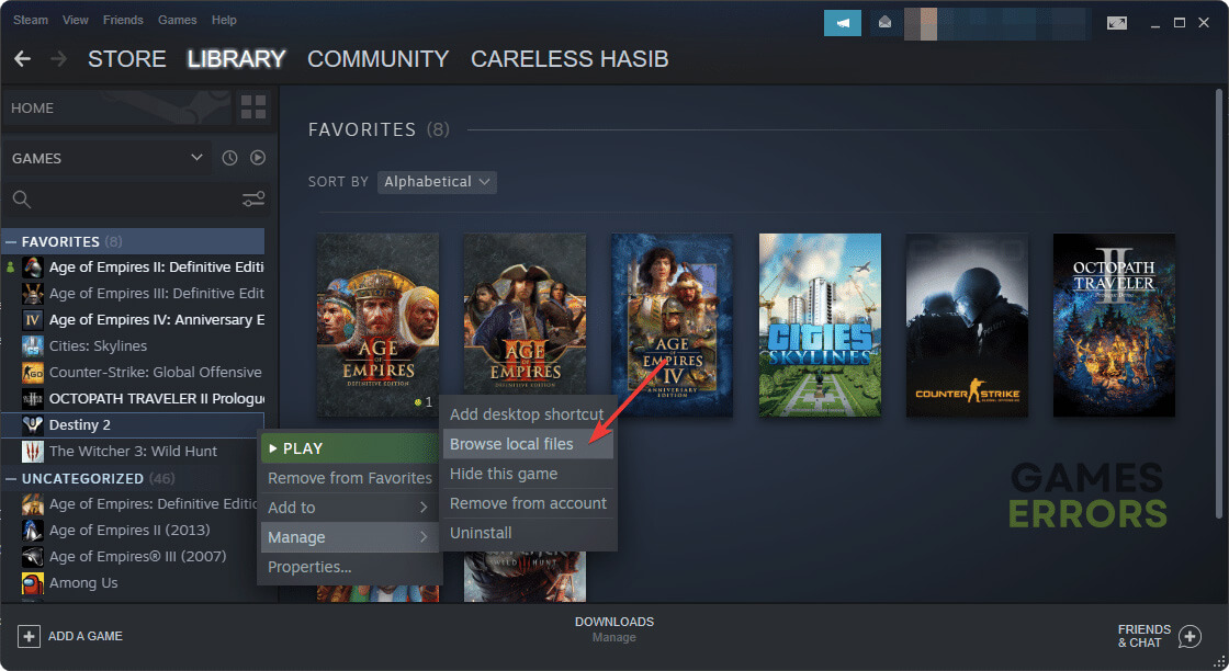 - ゲームライブラリに移動しますスチームまたは使用しているゲームランチャー。