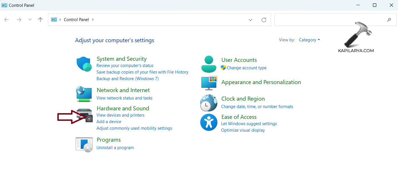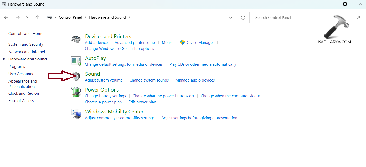2。「ハードウェアとサウンド」をクリックします。